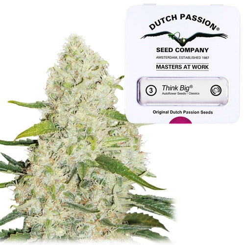 Think Big Autoflower wiet geeft een heldere sativa high. Maar Dutch Passion kon ons niet vertellen hoe hoog het THC-gehalte precies is. “Hoog”, kregen wij als antwoord. Als we dat vergelijken met soortgelijke planten uit de tuin van Dutch Passion, dan zouden we zo’n 15% zeggen. Maar pin ons er niet op vast. Als je haar verdampt of aansteekt komt je een aangename wierook lucht tegemoet. De citrussmaak, die je in wel meer sativa’s aantreft, zal geen verrassing zijn. De opbrengst daarentegen wel!