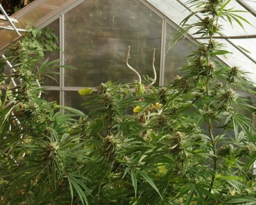 Je wietplanten kunnen net zo groot worden als dat de kas toelaat. Je zag eerder in dit artikel al een foto van een bloeiende wietplant die door het dak heen kwam. Dat is eigenlijk niet de bedoeling. Een hoop voordelen van kas kweken gaan verloren. Je ruimte is niet meer hermetisch afgesloten, de omstandigheden zijn minder te beïnvloeden, bij slecht weer regent het naar binnen en discreet is het natuurlijk allerminst.